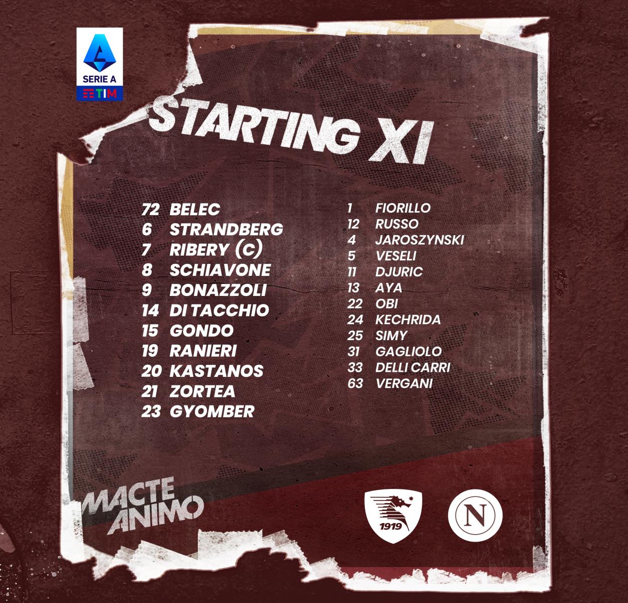 Meeting is taking place within the tournament. Serie A News. Salernitana vs Napoli Confirmed Line-ups.